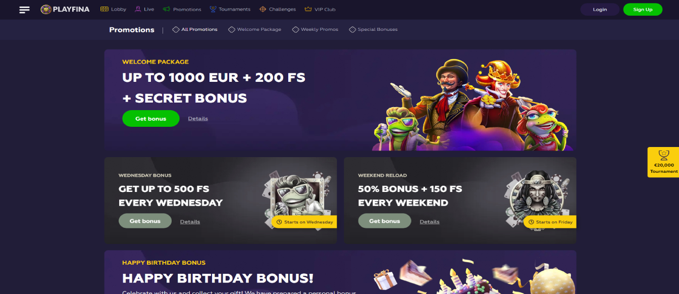 Many Playfina bonus codes offer generous welcome bonuses to new players. Make sure to use these codes when signing up to get the most out of your initial deposit.